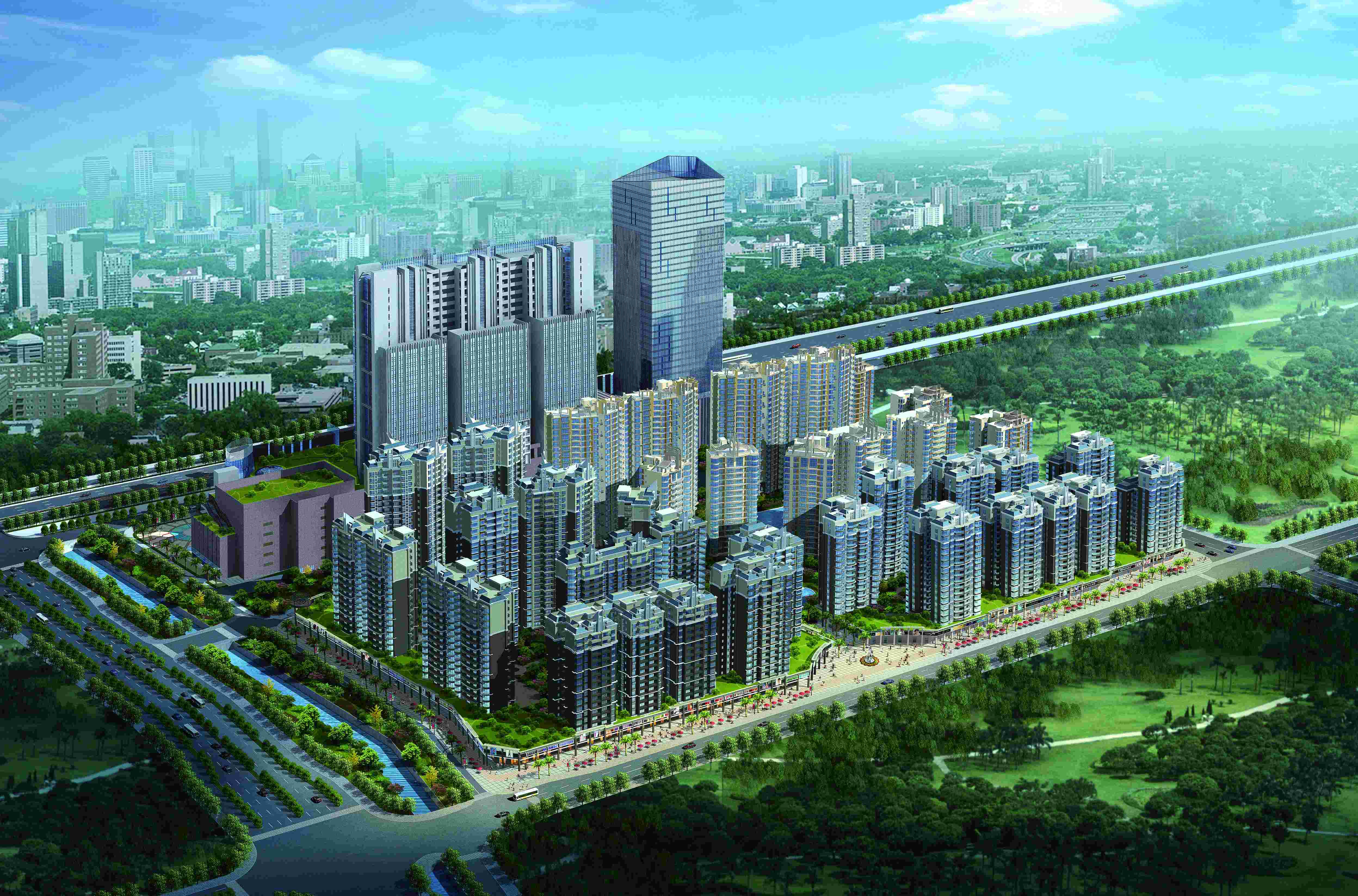 建筑總面積約為210000m2,地下1層,地上23層。城南多功能大型商住小區(qū)之一。
